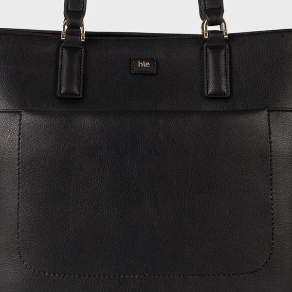 Admire the sleek and stylish front view of the Becky Tote, showcasing its elegant design and practical front magnetic pocket.