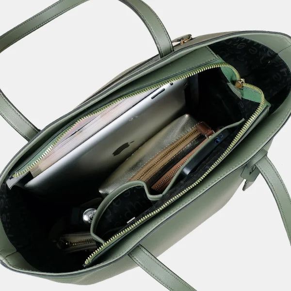 Explore the spacious interior of the Ellen Tote, designed to comfortably fit all your daily essentials and more.
