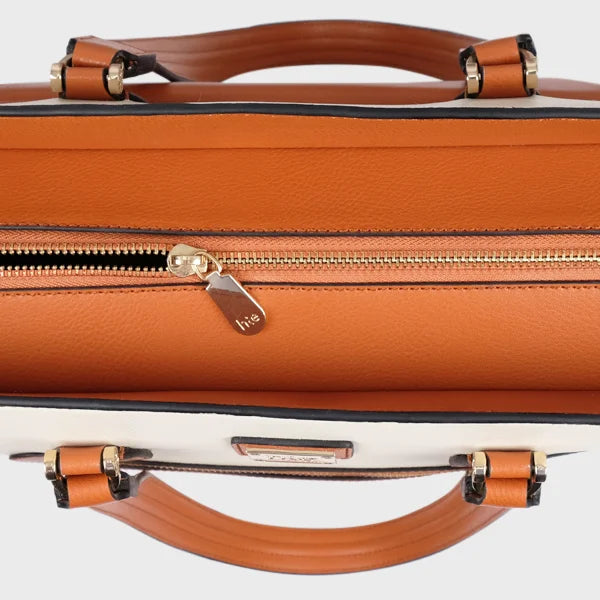 Admire the stylish metal zip closure that ensures the safety of your belongings while adding a touch of elegance to your bag.