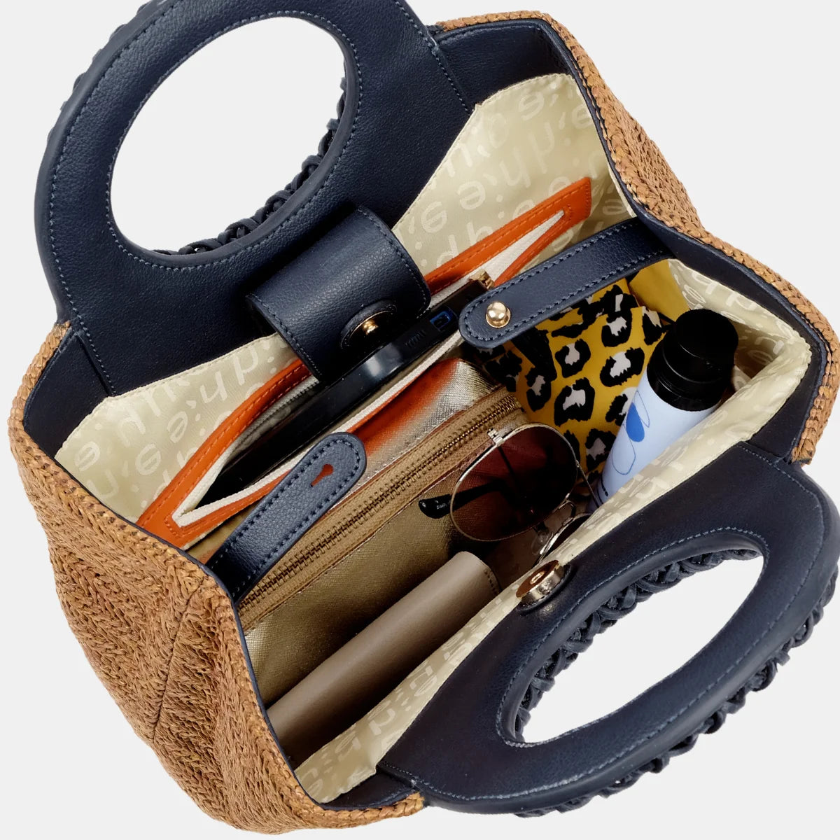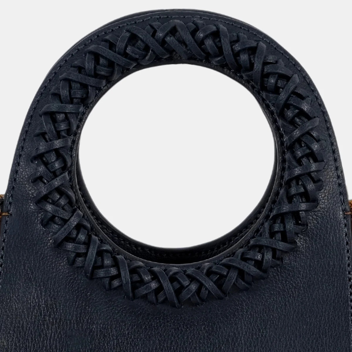 Admire the artisanal handwoven handle, a blend of craftsmanship and style that elevates your look.
