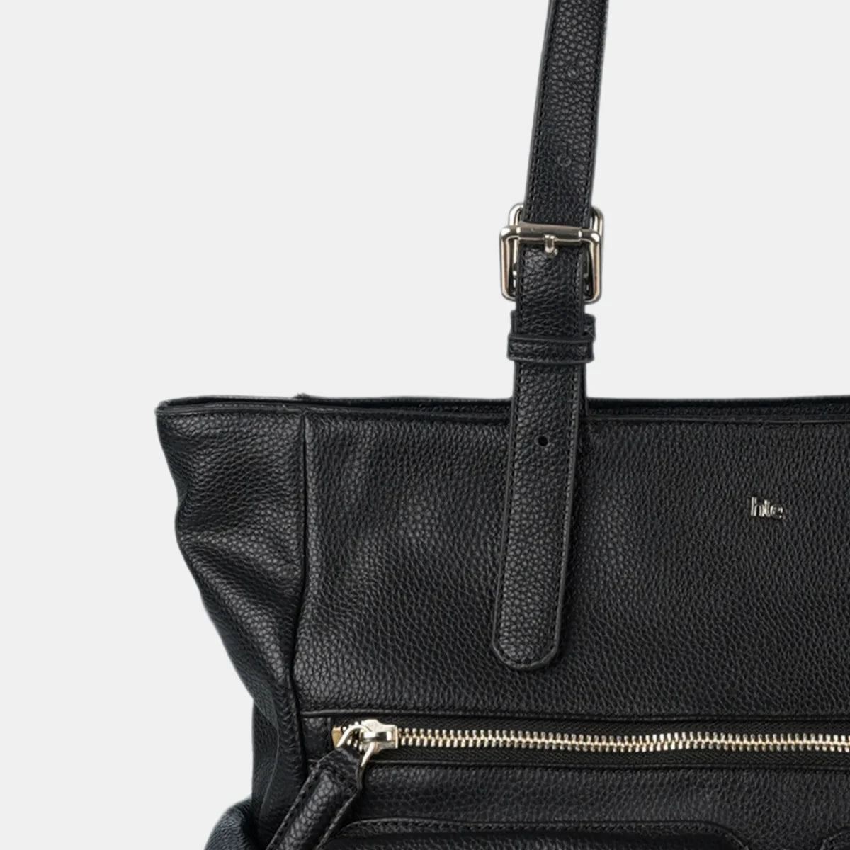 The Lisa Tote from HIE is the perfect everyday workbag, combining functionality with style. Crafted from super soft materials, this tote is designed to be your go-to companion for work and travel. It features two compartments in the front and two on the sides, providing easy access to your essentials. The front zip pocket and spacious interior with multiple pockets keep you organized on the go. Additionally, the back zip pocket allows you to conveniently slide the tote over your suitcase handle during travel, making it an ideal choice for both daily use and trips.