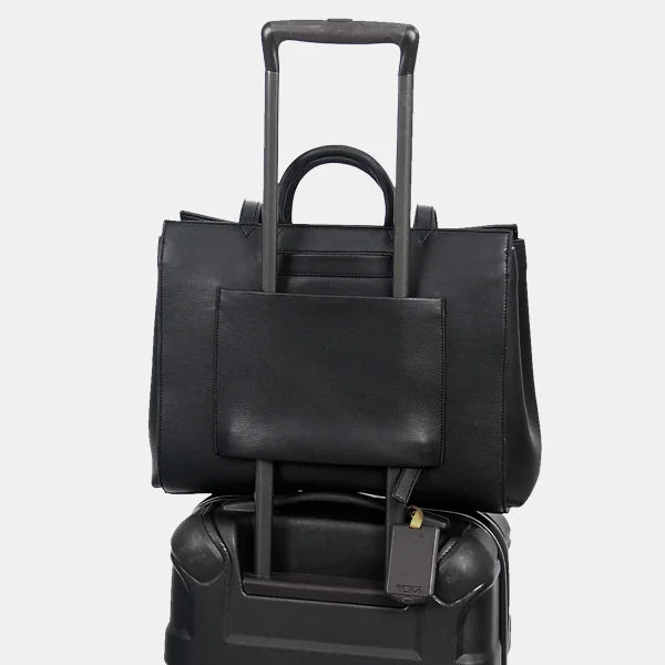The Vivian Tote is designed for the modern woman who values both style and practicality. Featuring two handles a top handle and a shoulder handle it offers versatility for different carrying preferences. The spacious main compartment includes inside pockets and printed lining for a touch of elegance. The back zip pocket conveniently opens to slide the tote onto your suitcase, making it the perfect bag for work and travel.